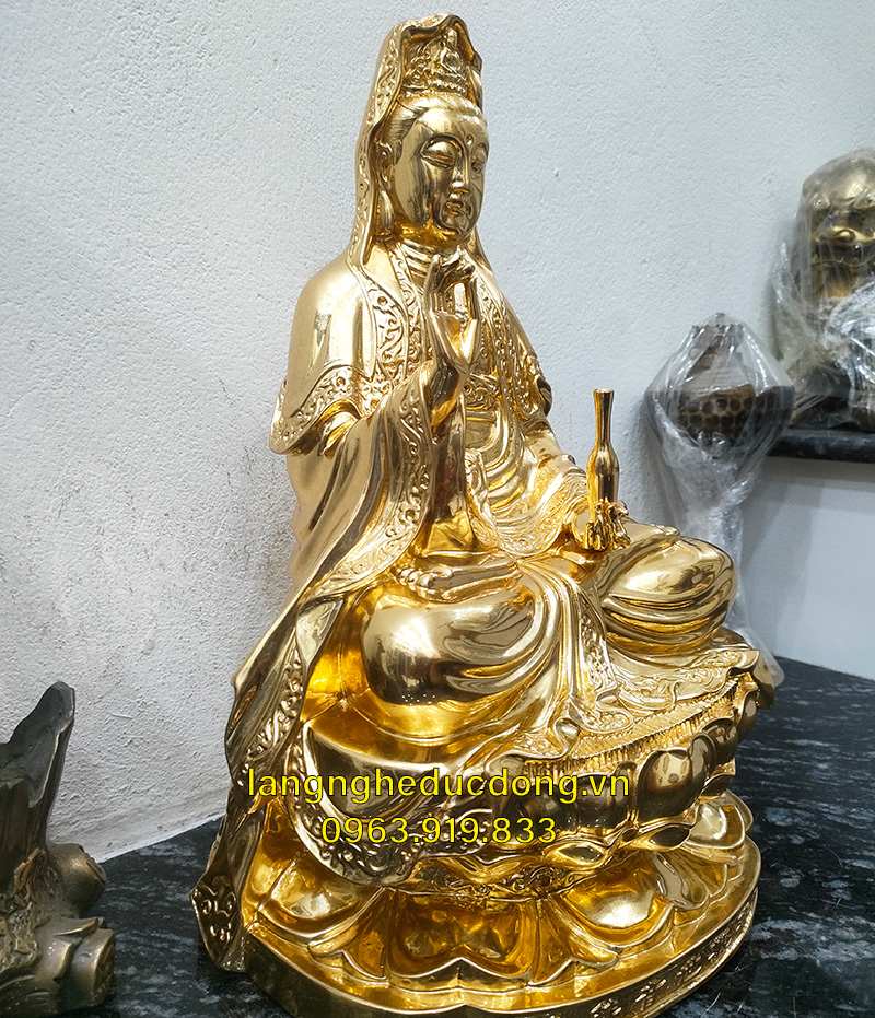 Tượng phật quan âm cao 30cm đồng vàng dát vàng 24K tượng đúc bằng đồng vàng công nghệ đúc khuôn vỏ mỏng 7.800.000 ₫ -