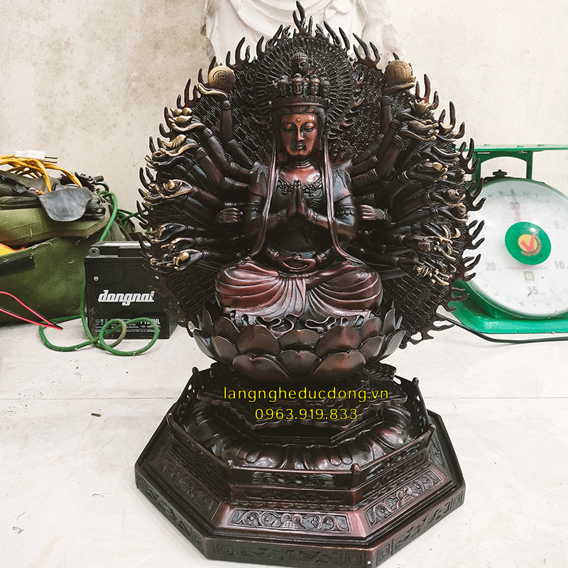 Tượng Phật Thiên Thủ Thiên Nhãn bằng đồng vàng cao 41cm hun nâu