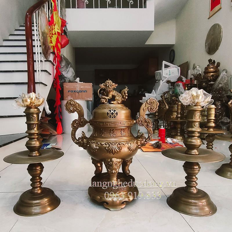 - 02 Chân nến (Đôi nến): Chiều cao 42cm để đảm bảo tính cân đối khi đặt cạnh đỉnh 51cm(chân nến có đôi hoa sen rời).