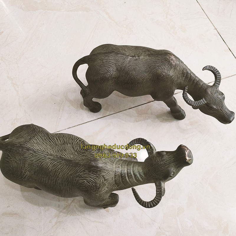 Đôi trâu đúc bằng đồng vàng dài 25cm