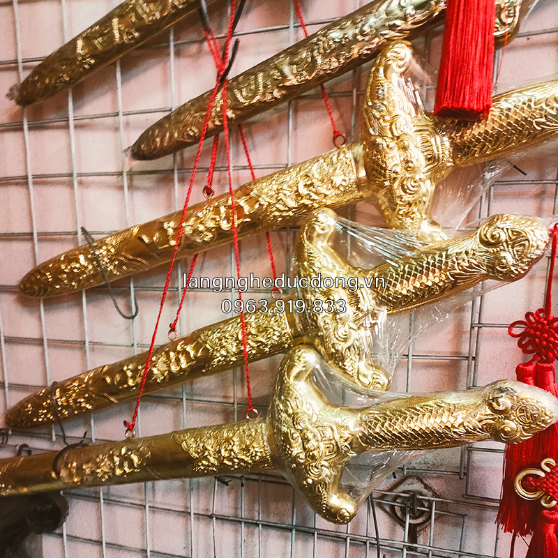 Chất liệu Đồng bền vĩnh cửu: Lưỡi kiếm bằng đồng vàng(đồng lá), bề mặt được phủ keo 2K xử lý chống oxy hóa, giữ cho màu sắc luôn sáng bóng, sang trọng theo thời gian.