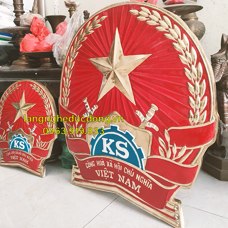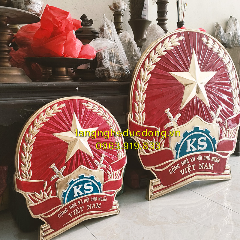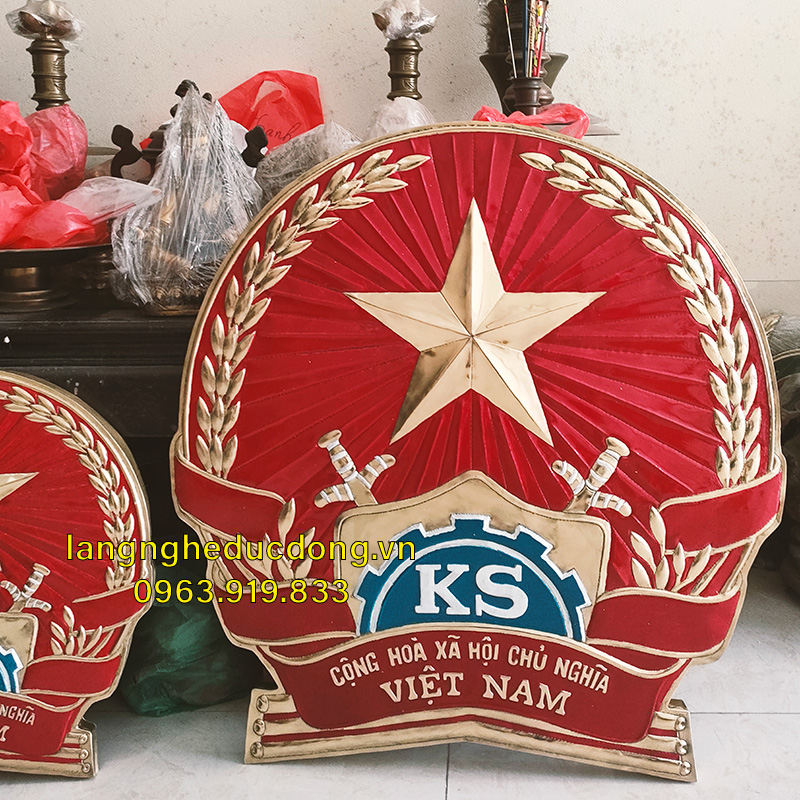 Thúc nổi thủ công 3D tinh xảo. Các chi tiết như hình ngôi sao, bông lúa xòe đều, thanh kiếm và bánh xe lịch sử được chạm khắc sắc nét, sống động.