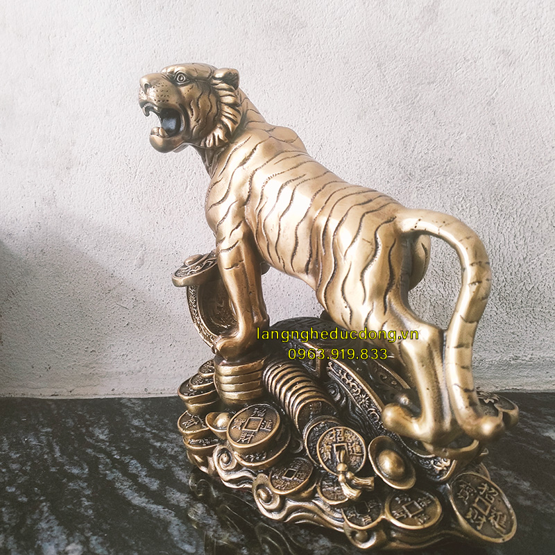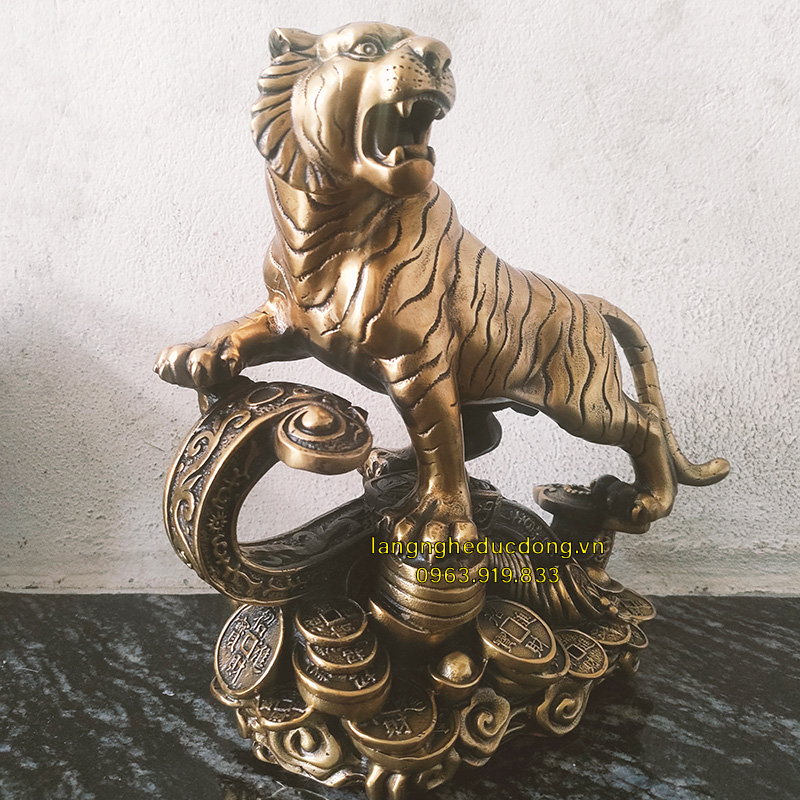 Hình tượng Mãnh Hổ: Đứng uy nghiêm, ánh mắt sắc bén giúp trấn trạch, xua đuổi tà khí và những kẻ tiểu nhân quấy phá.