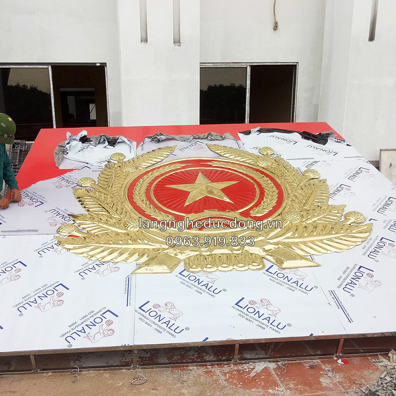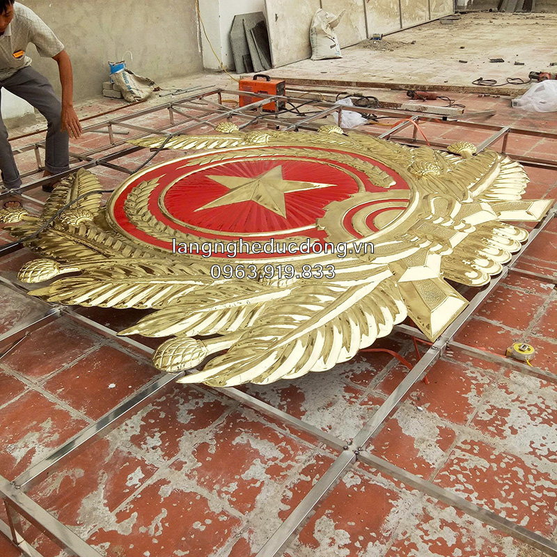 Chất liệu: Đồng vàng tấm độ dầy 1.2mm để đảm bảo độ cứng khi thúc nổi kích thước lớn(có gia cố xương phía sau).