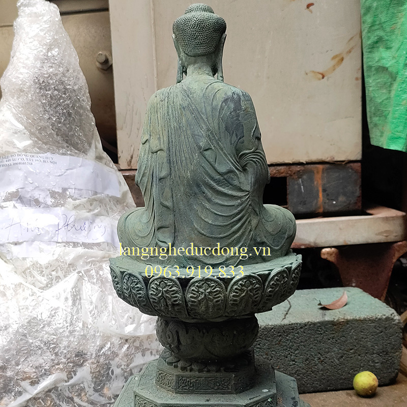 Sản phẩm: Tượng Phật A Di Đà (theo nguyên mẫu tượng cổ tại Chùa Bút Tháp, Bắc Ninh) tượng bằng đồng vàng làm mầu xanh giả cổ.